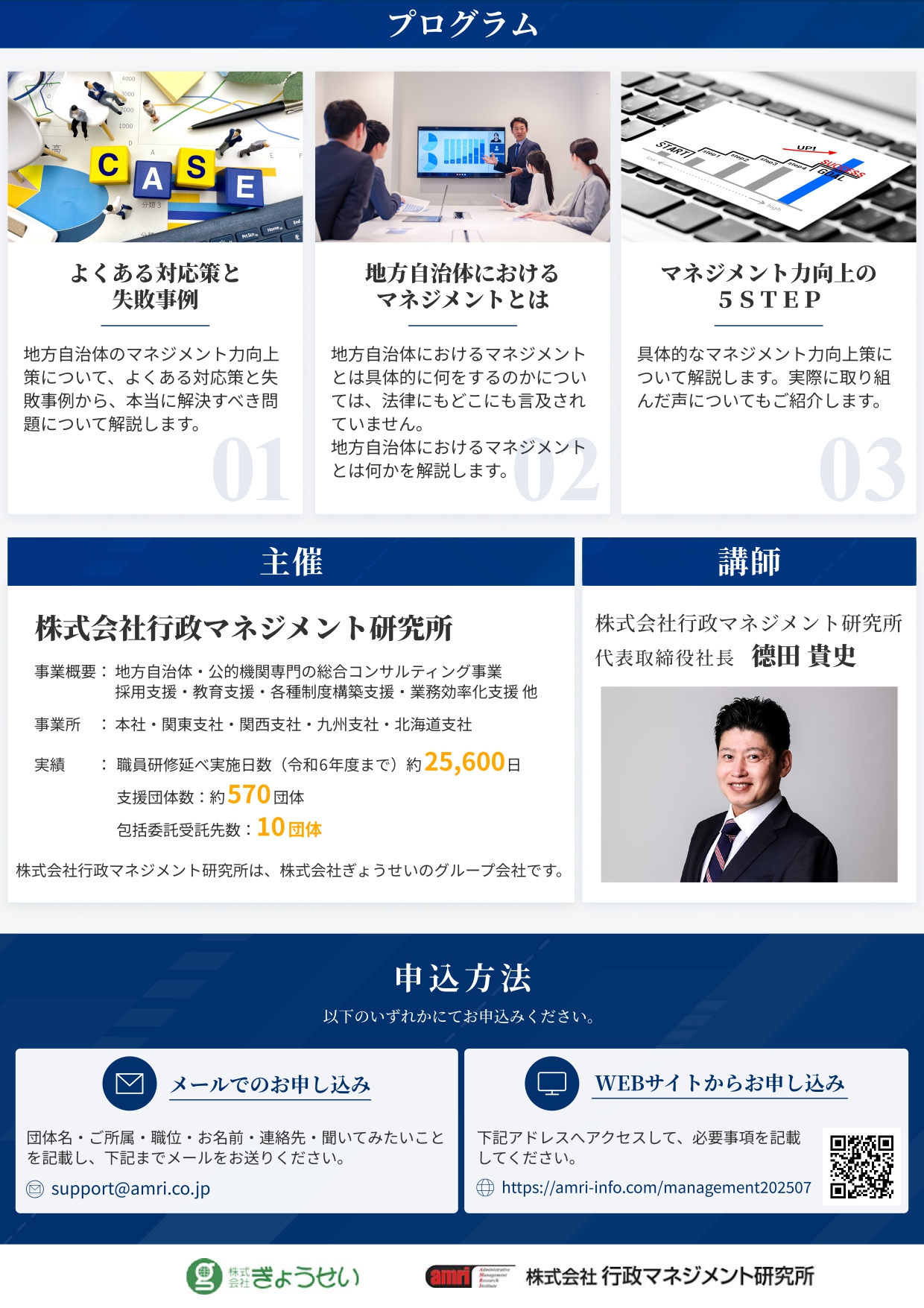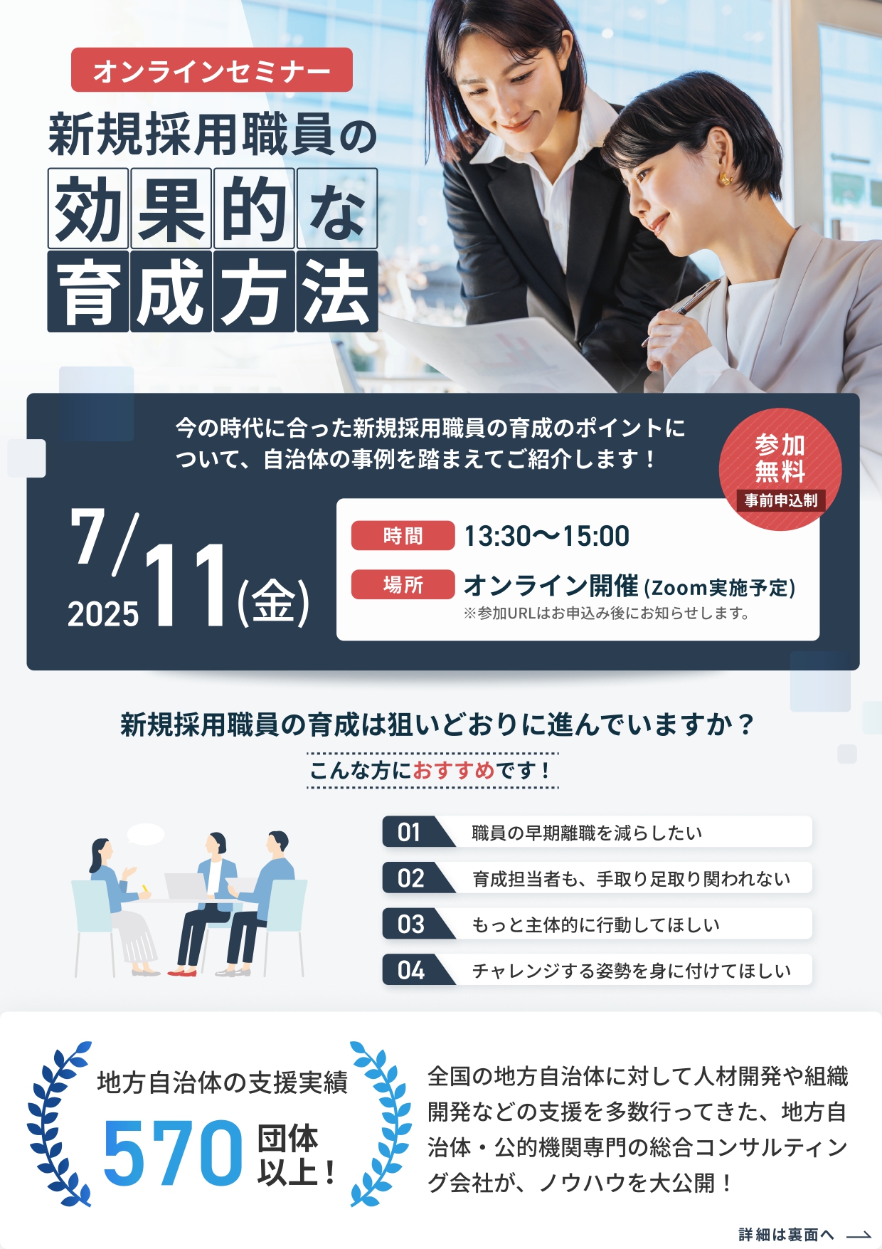 • 【※開催終了しました】7月18日開催 オンラインセミナー「地方自治体におけるマネジメント力向上策」のご案内